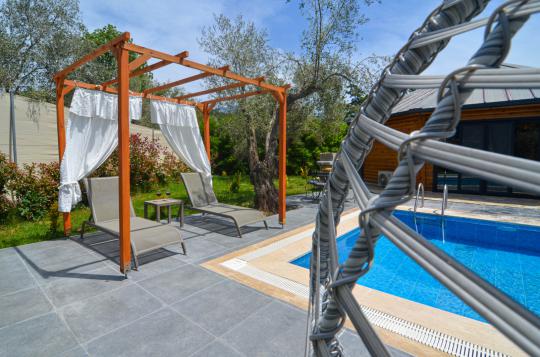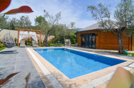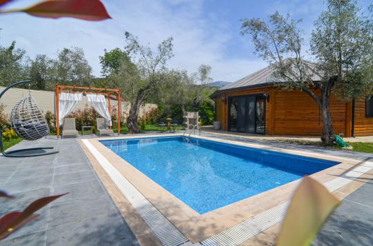 Fethiye’nin antik kenti Kayaköy'de yer alan ve 2015 yılında faaliyete girmiş olan Kayı Villaları içerisinde bulunan ahşap villalardır. Kayı Ahşap Villaları özenli bir şekilde döşenmiş bir villa olup, tamamen korunaklı yüzme havuzuna sahiptir. Bu özelliği sayesinde balayı çiftleri ve çekirdek ailelere muhteşem bir tatil imkanı sunmaktadır. Villamızın hemen yanında başka villalarımız daha bulunmaktadır. Yan yana villa arayışında olan misafirlerimiz ardışık villalarımızı da değerlendirebilirler. 3D linkine buradan ulaşabilirsiniz ; https://youtu.be/gfGYSlM_kRY