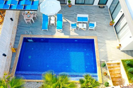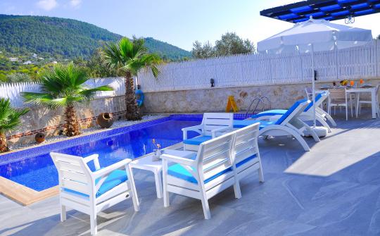 Doğa manzarasına hakim balayı konseptinde bulunan 2 kişilik müstakil villamızdır. Hoş bir tasarıma ve korunaklı yüzme havuzuna sahiptir. Kalkan Üzümlü mevkiinde bulunmakta olan villamız merkeze yakın bir konumdadır.