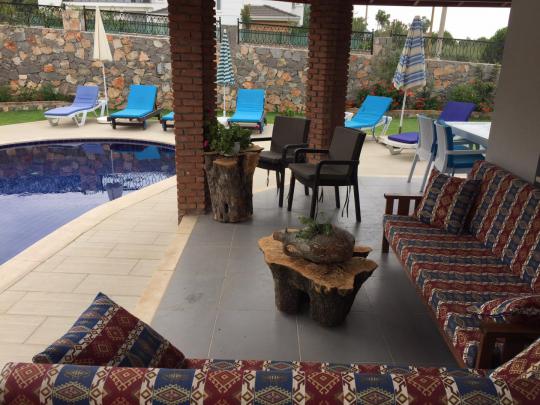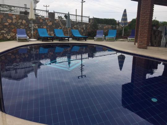 4 Yatak odalı, 3 banyolu, özel bahçeli ve özel havuzlu villamız kalabalık gruplar ve büyük aileler için uygundur. Villamız daha 2 yıllık yeni binadır. Alışveriz merkezlerine, ana yola ve plaja yakındır. Kendine ait otoparkı mevcuttur.