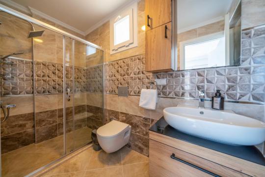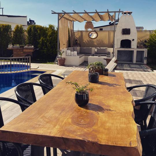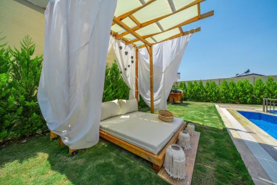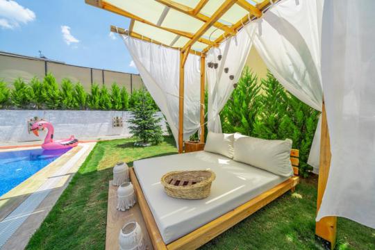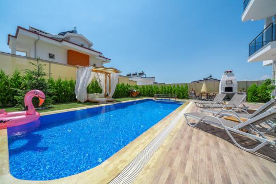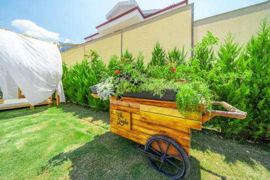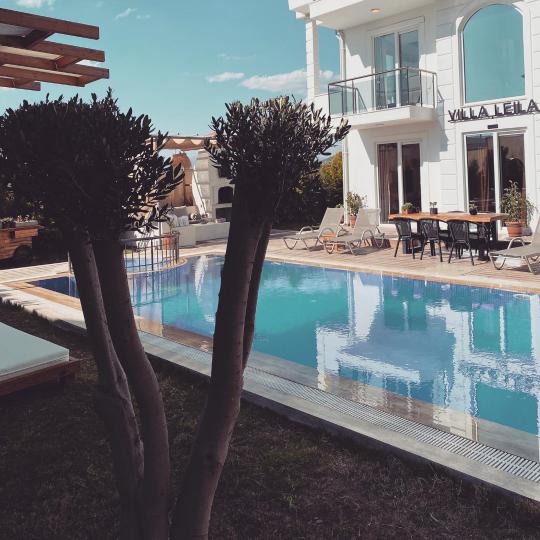 Müstakil yüzme havuzlu evimiz, Fethiye'nin Ovacık mevkiinde yüksek konumda yer almaktadır. Lüks ve modern mimarisiyle öne çıkan bu evimizde 3 adet yatak odası bulunmaktadır. Her odasında özel banyosu bulunan Villa Leila, bu özelliği ile 3 farklı aileye unutulmaz bir tatil imkanı sağlamaktadır.