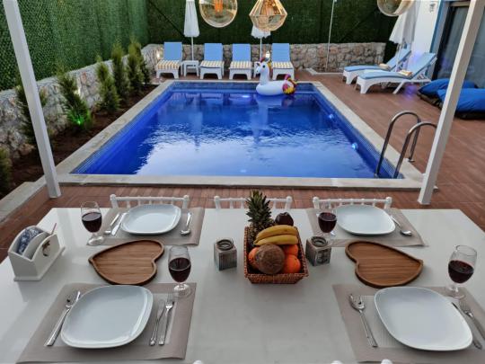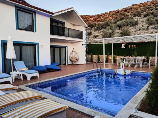 Kalkan Ulugöl mevkiinde yer alan havuzu tam korunaklı villamızdır. Villamızın içi son derece zevkli ve kaliteli dizayn edilip, ihtiyacınız olan her şey düşünülmüştür. Çocuklar için özel oyun odası ve langırt bulunmaktadır. Keyifli bir tatil geçirmek, dinlenmek ve eğlenmek için Villa Marin'i tercih edebilirsiniz. Kalabalık aile ve arkadaş grupları için ideal bir seçenektir.